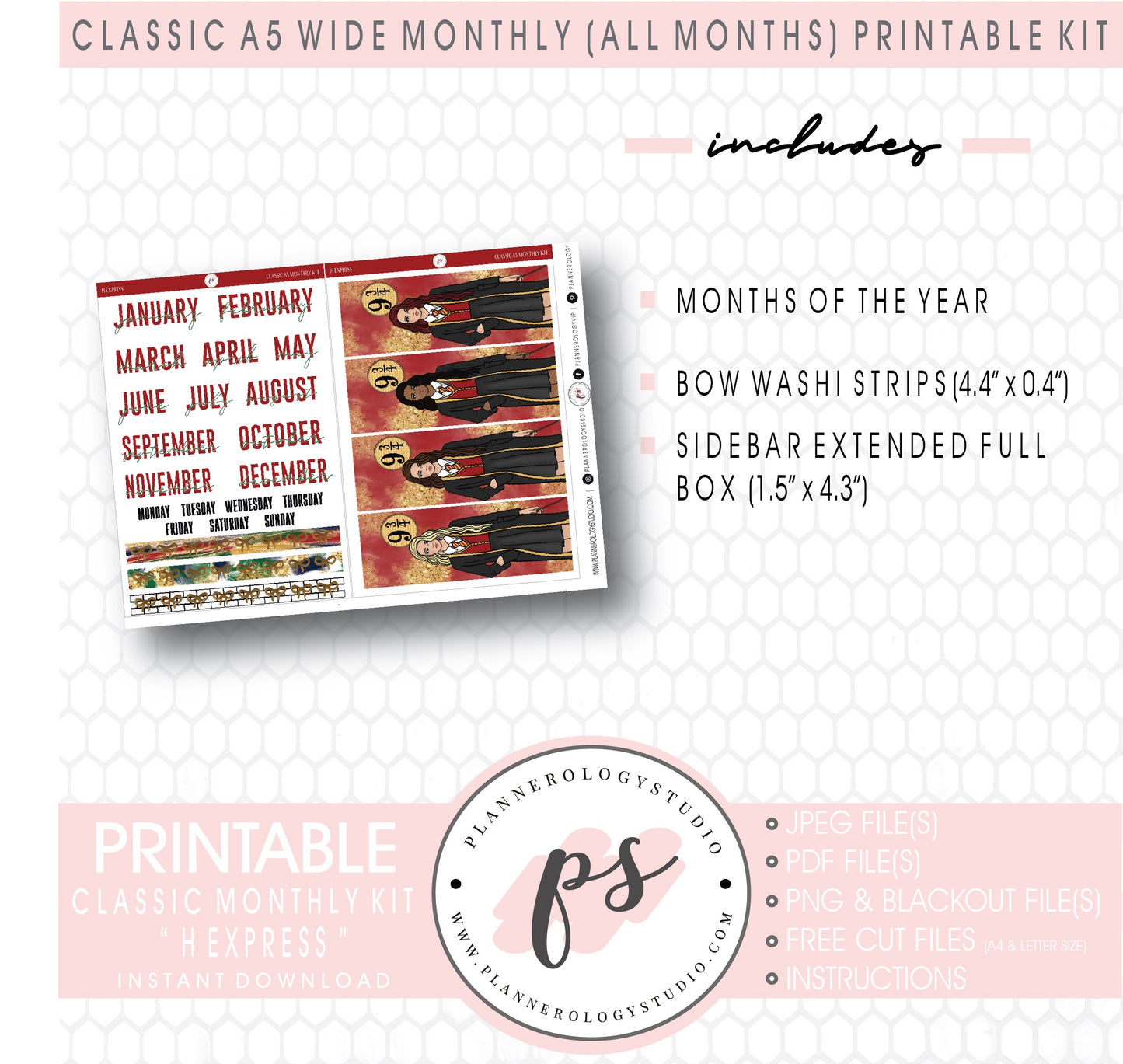 H Express (Harry Potter Inspired) Monthly Kit Digital Printable Planner Stickers (Undated All Months for Classic A5 Wide Planners)