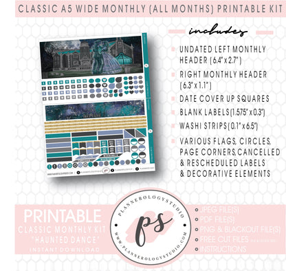 Haunted Dance Monthly Kit Digital Printable Planner Stickers (Undated All Months for Classic A5 Wide Planners)