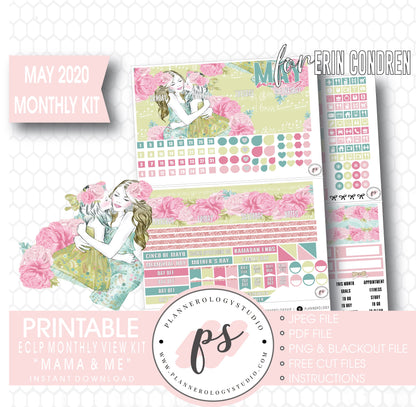 Mama & Me (Mother's Day) May 2020 Monthly View Kit Digital Printable Planner Stickers (for Standard A5 Wide Monthly 1.6" Width Date Boxes)