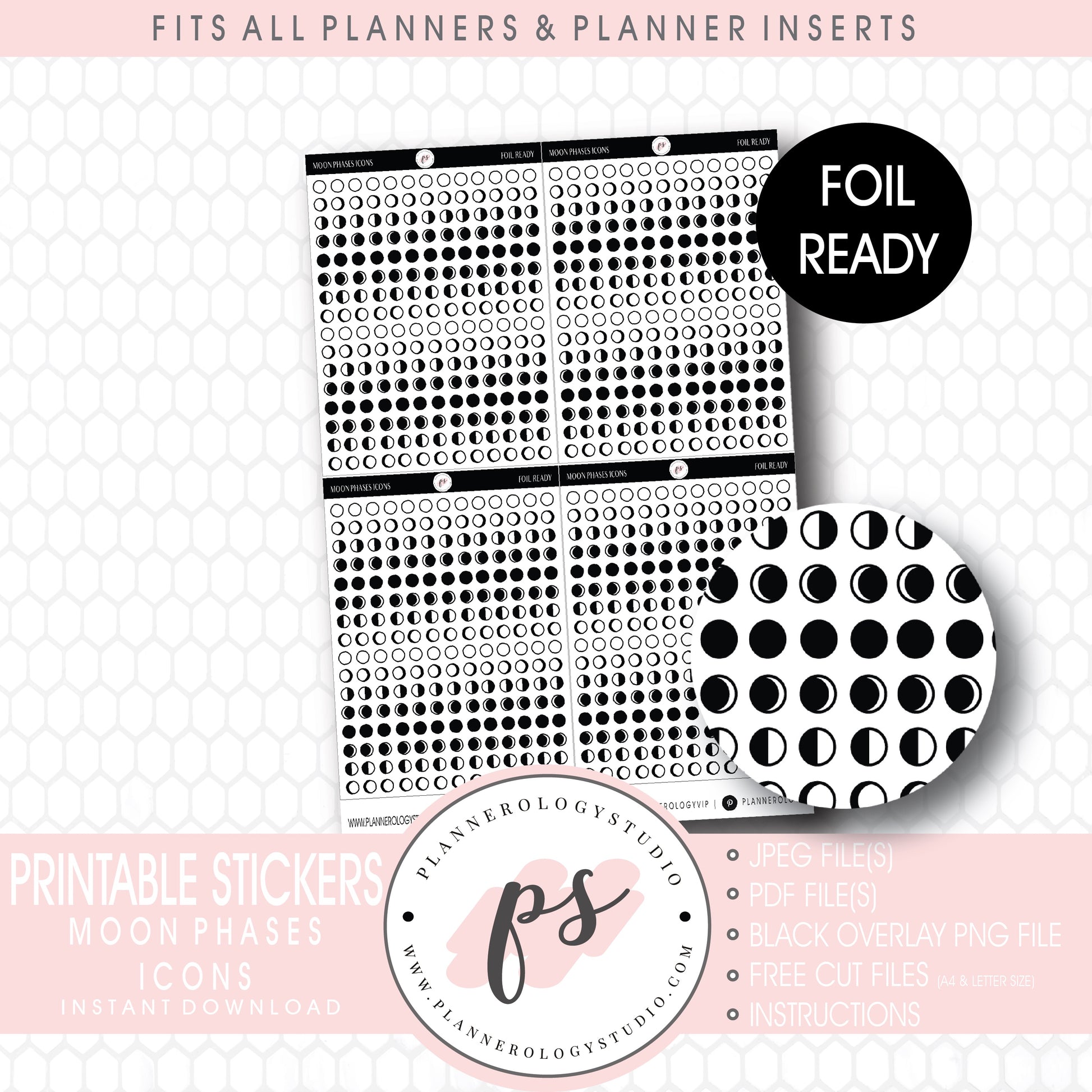These foil ready mini moon phases icon printable stickers (approx. 0.1" x 0.1") can be used in any planner or planner inserts.