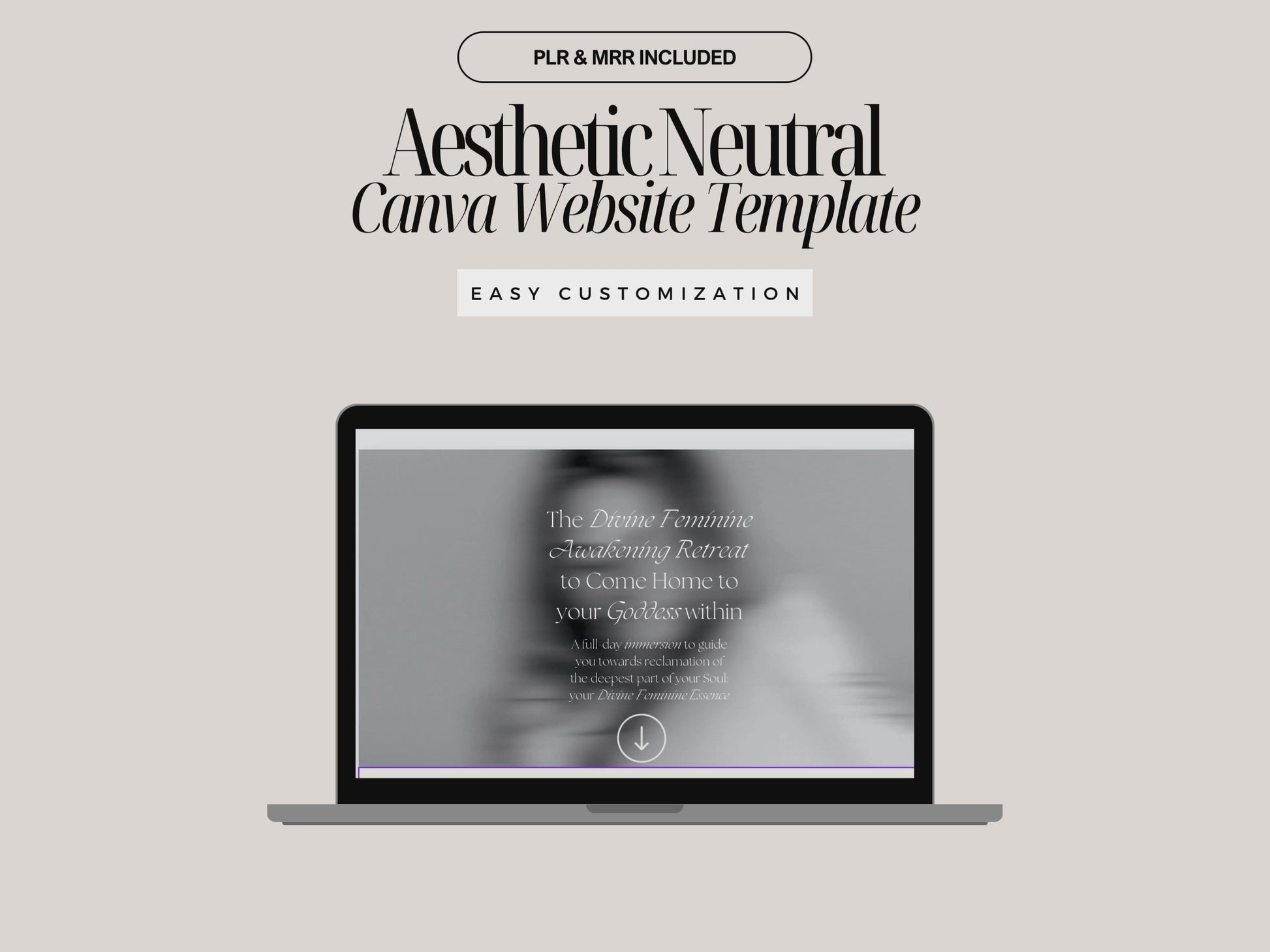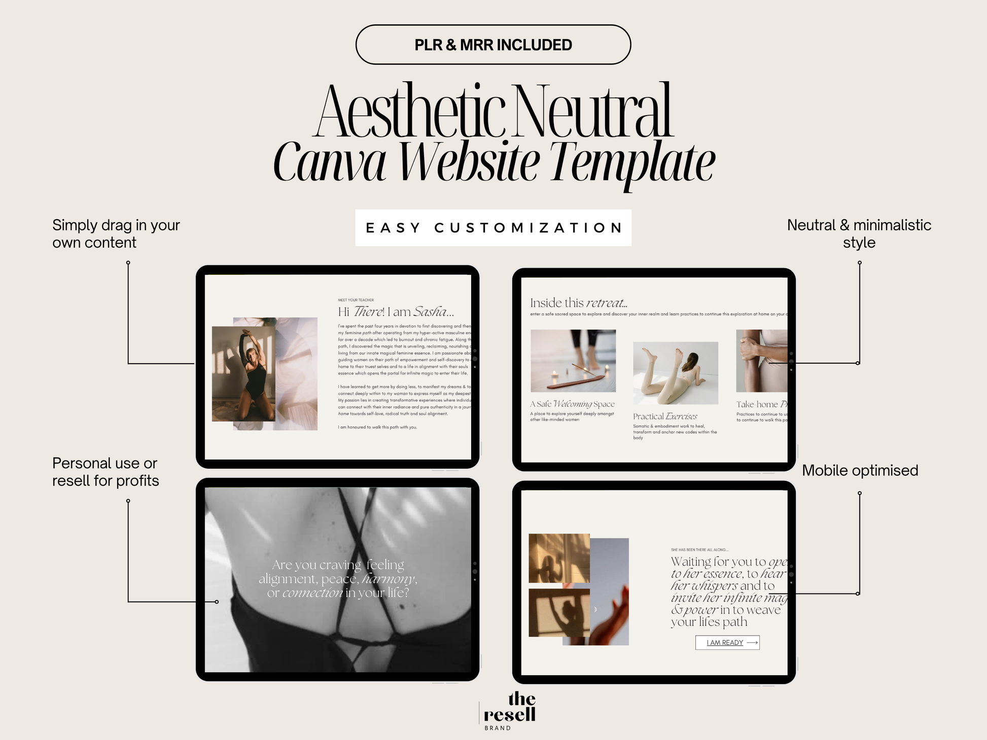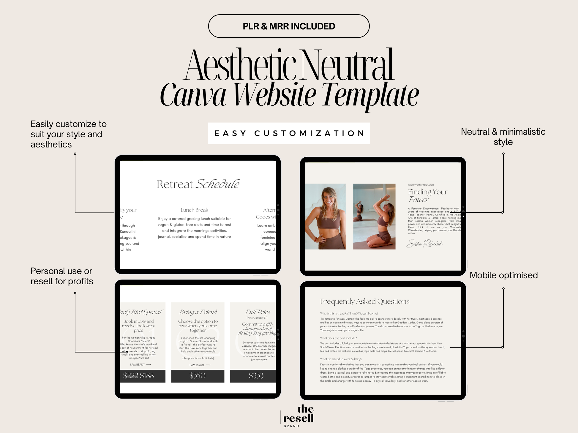 Neutral Aesthetic Canva Website Template | 17 Editable Pages | Yoga Fitness Beauty Influencer Coach Site | PLR + MRR | Minimalist Design
