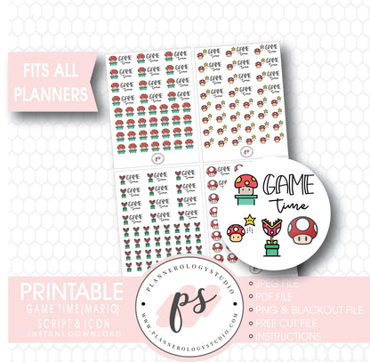 Super Mario Game Time Bujo Script & Icon Digital Printable Planner Stickers