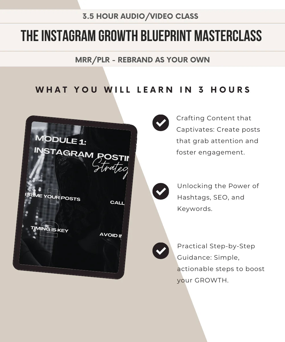 Introducing The Instagram Growth Masterclass – a comprehensive 3-hour video/audio course that's your passport to Instagram GROWTH mastery! 👑