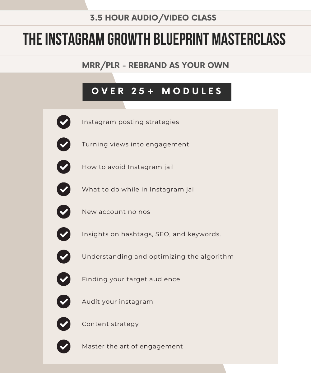 The Instagram Growth Masterclass 3 Hour Video Course | 25 Modules, 99 Videos | Viral IG 101 Blueprint Mini Course | Digital Marketing Course with PLR & MRR