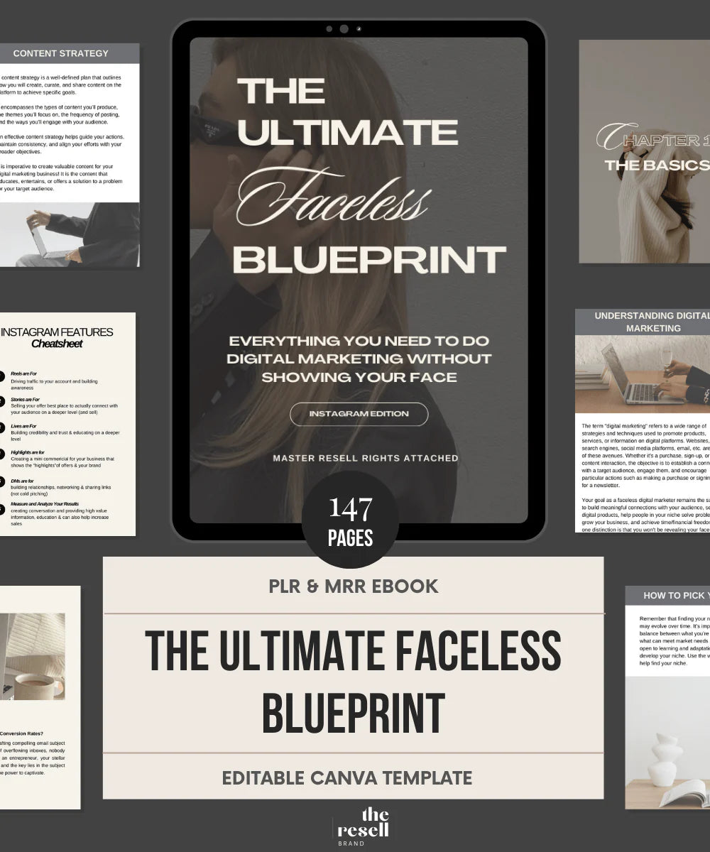 🚀 Elevate your marketing strategy with our exclusive "The Ultimate Faceless Blueprint" eBook! 📚✨ It is a comprehensive guide to selling digital products online and comes with both Private Label Rights (PLR) and Master Resell Rights (MRR), making it a versatile asset for entrepreneurs and marketers alike.