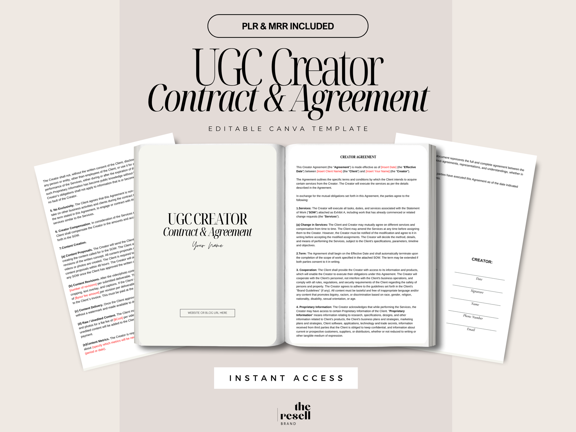 UGC Creator Legal Contract & Agreement Template | 8-Page Editable Canva Document | PLR + MRR Rights Included