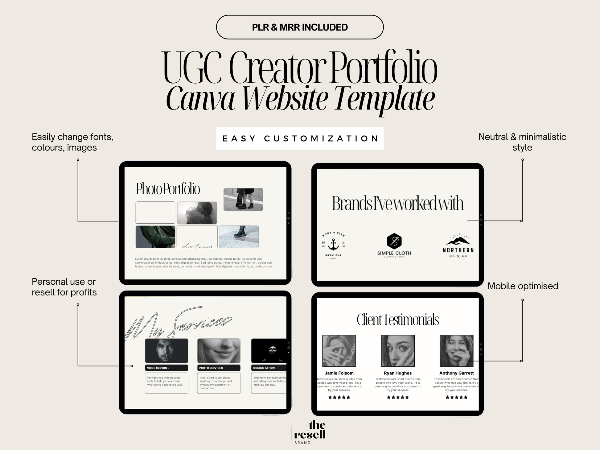 UGC Creator Portfolio Landing Page Canva Website Template | 12-Page Editable Canva Site | Neutral & Minimalist Design | PLR + MRR Included (Copy)